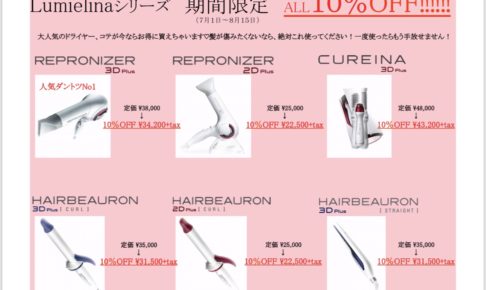 ドライヤーも、コテも、ストレートアイロンも、くるくるドライヤーも!ぜんぶ、ぜーんぶ10%offですっ!